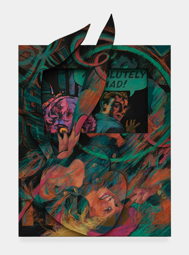 그의 화면에서 주목할 것은 이미지의 출처가 단일하지 않다는 점이다. 빈티지 코믹스, 핀업 이미지, 상업