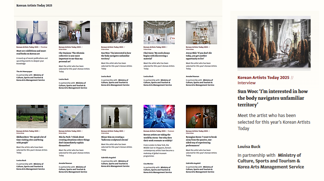 「The Art Newspaper」 “Korean Artists Today 2025” ― Korean Contemporary Art Capturing the World’s Attention