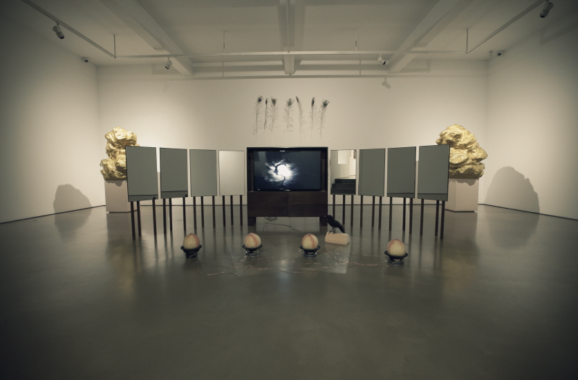 The exhibition 《When Two Galaxies Merge,》 by Yangachi (b. 1970) centers on the moment when things that cannot meet—or things that are inevitably bound to meet—collide. Yangachi likens this moment, when the impossible meets the inevitable, to “the moment love begins,” or to “an uncertain sign” of some event that will take place in the future.