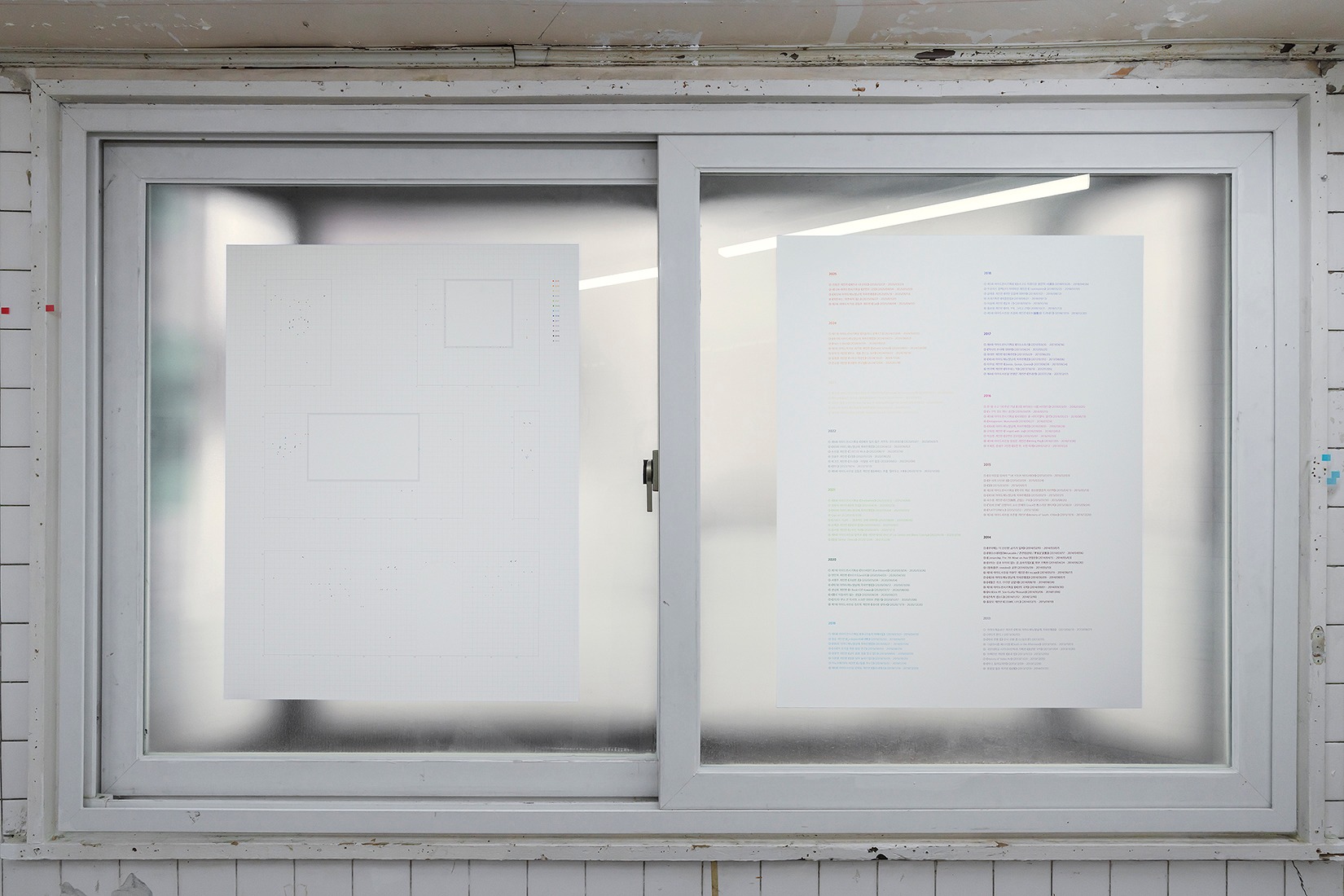 반응해 수립한 자의적 규칙에 따라 일상적 노동을 반복하며 예술과 일상의 경계를 질문해오고 있다. 작가는 2023년 말부터 아마도예술공간 자체를 작업의 주어진 조건으로 부여받고, 이에