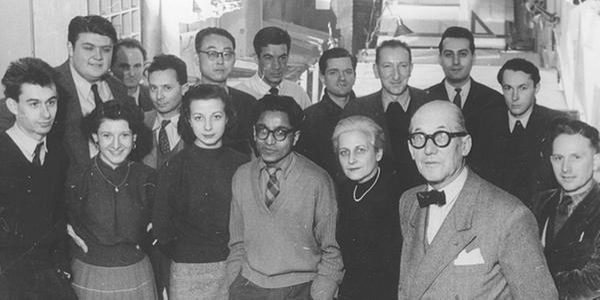 르 코르뷔지에(앞줄 오른쪽 둘째) 제자로 있었던 김중업(뒷줄 왼쪽 넷째)./ 사진:매일경제