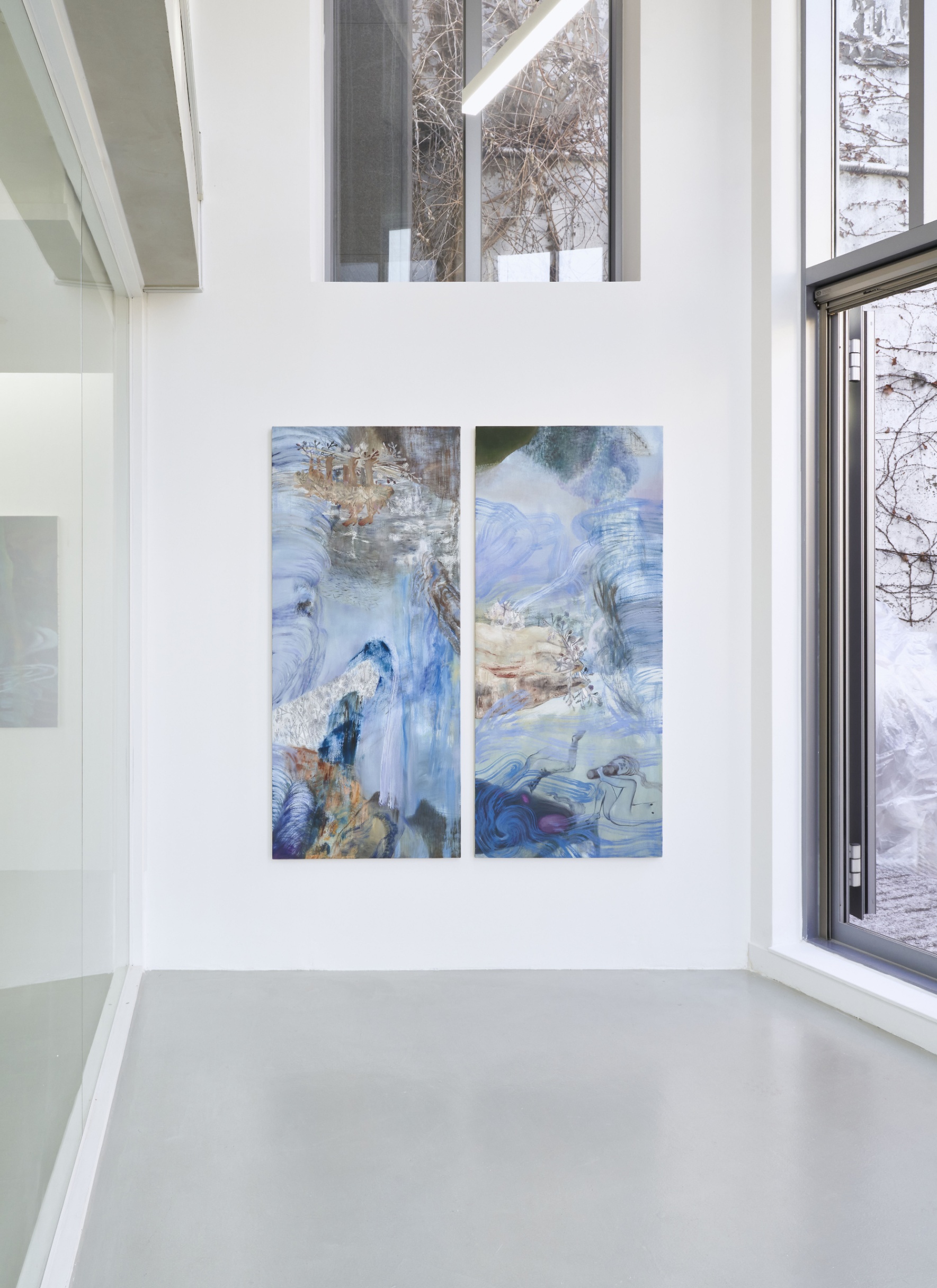 혼란, 그리고 출산이라는 근원적인 신체적 체험을 캔버스에 축적해 나간다. 이러한 감각들은 고정된 정체성이나 서사적 재현으로 수렴되기보다, 불안정한