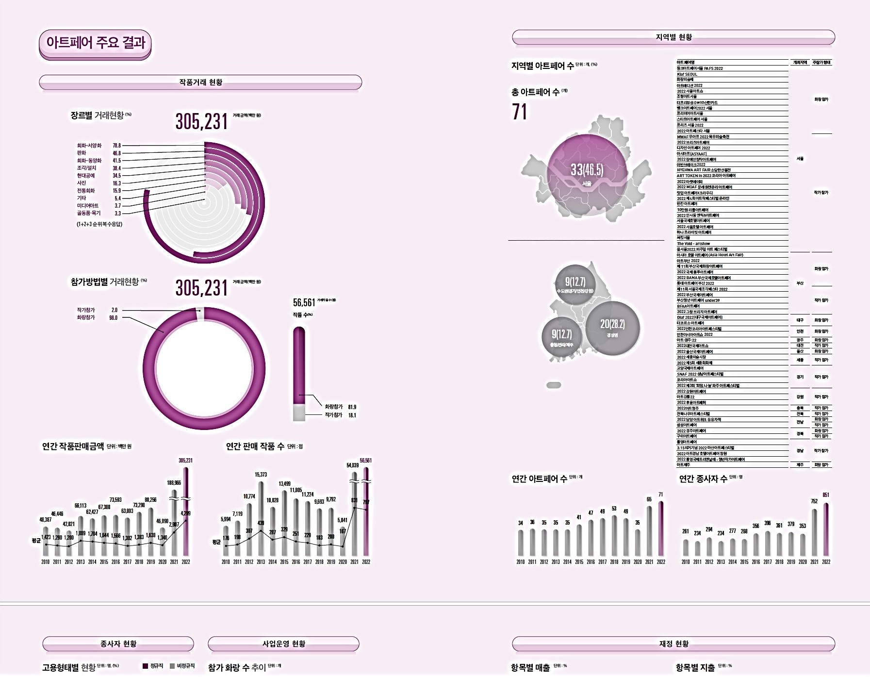 From 65 in 2021 to 82 in 2023, the number of art fairs in South Korea has significantly increased. The Korean art market reached approximately 662.5 billion KRW in 2023, with art fair sales, including those by participating galleries, accounting for about 300 billion KRW. Although these fairs are typically venues for established galleries, extending their sales activities, the fact that an average of six art fairs are held each month in Korea is notable, even compared to international standards.