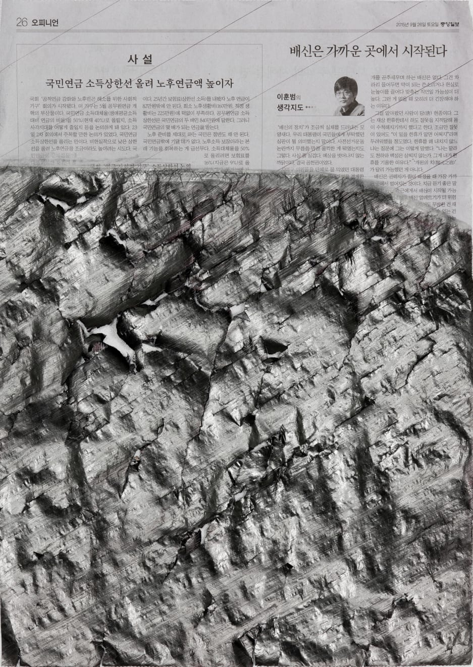 pencils and ballpoint pens on newspapers repeatedly, until black lines covered
