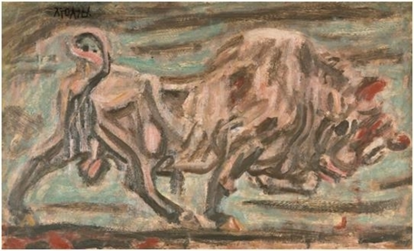 Lee Jung-seop, Cow and Child(1954). 29.8 × 64.5 cm. / Courtesy: K Auction