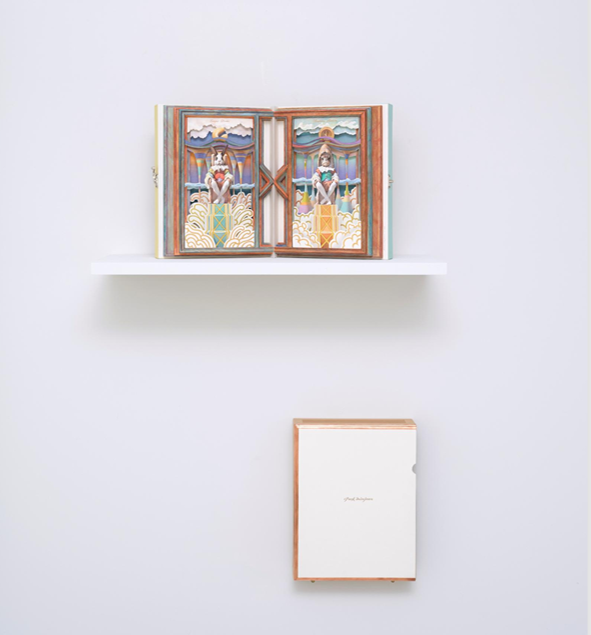 adopts a diptych structure joined by a hinge—inviting the viewer to physically “open