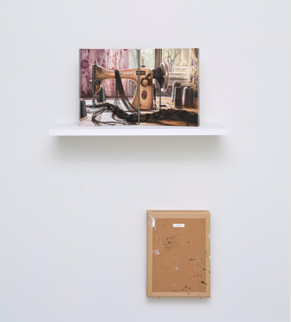 Sun Woo, 2025, oil on linen, 41 × 32 cm (each) diptych, 43.5(h) × 33.5 × 10 cm (box)
