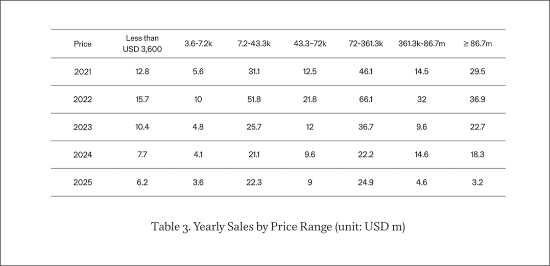 careful attention is that high-end transactions over KRW 1 billion (≈ USD 720,000) have contracted sharply, while works in the KRW 100