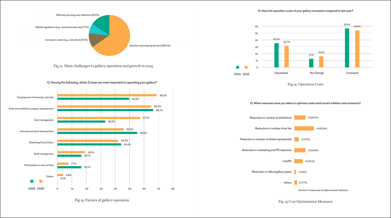 (Left) Question about the three most important areas in gallery operation / (Right) Question about gallery operating costs