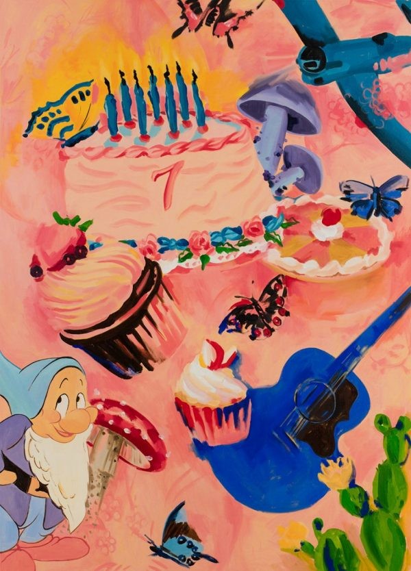 〈Layered Pink Cake and Blue Guitar I〉, 2019, Oil on canvas, 227 x 162 cm