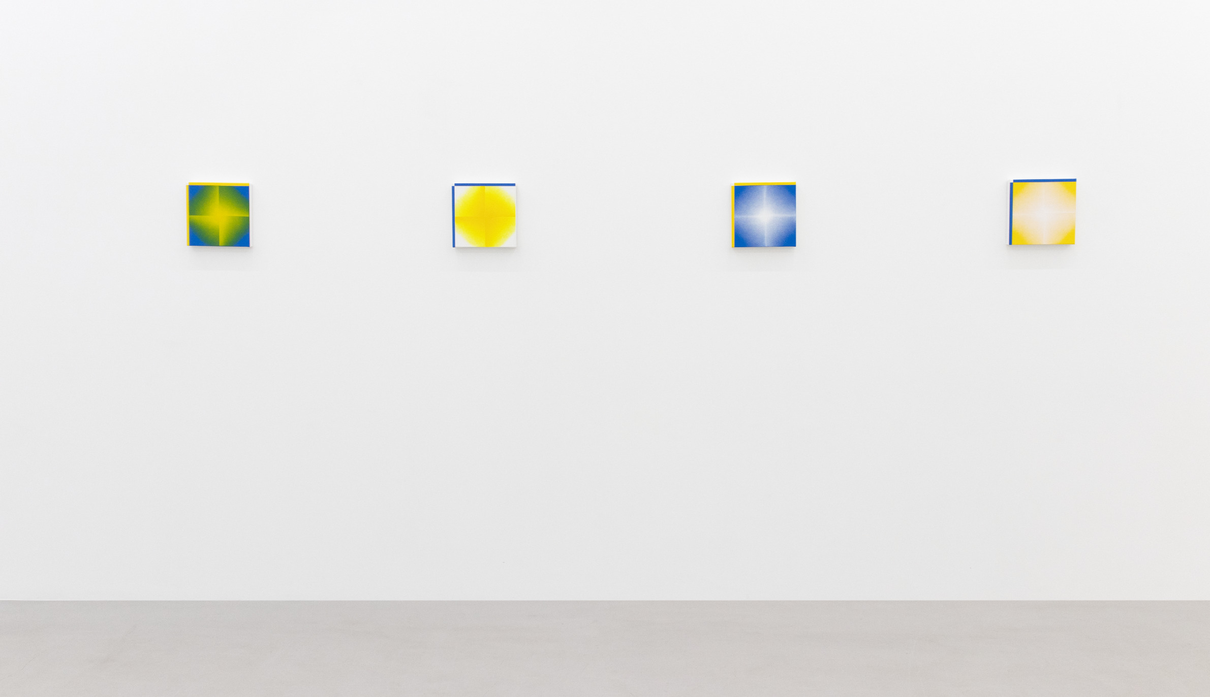 The new paintings are composed on square canvases of various