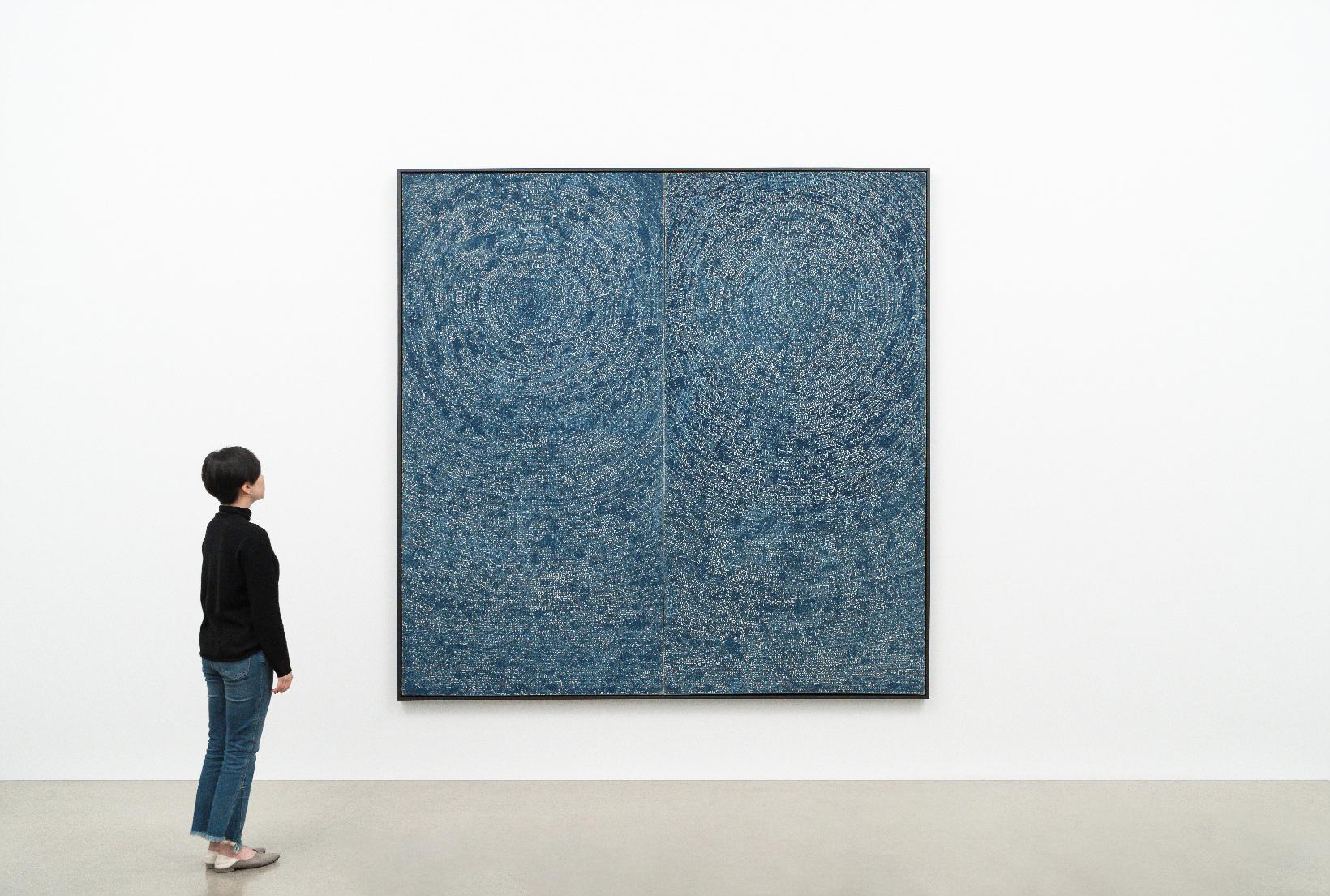 Kim Whanki, Universe 05-IV-71 #200, 1971, Oil on cotton, 254 x 254 cm. Installation view of the exhibition 《현대 HYUNDAI 50》 ⓒWhanki Foundation · Whanki Museum