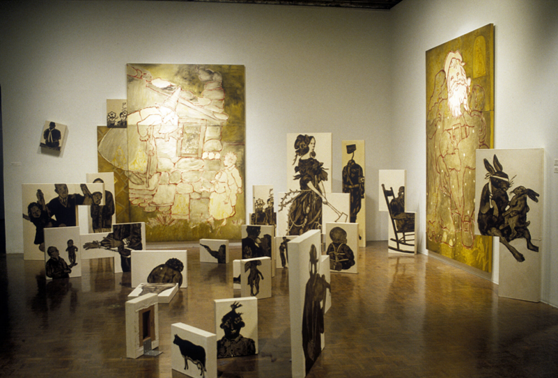 Ida Applebroog, Jack F: Forced to Eat His Own Excrement (1992); Ida Applebroog, Kathy W.: Is Told that If She Tells Mommy Will Get Sick and Die (1992). Photograph by Geoffrey Clements
