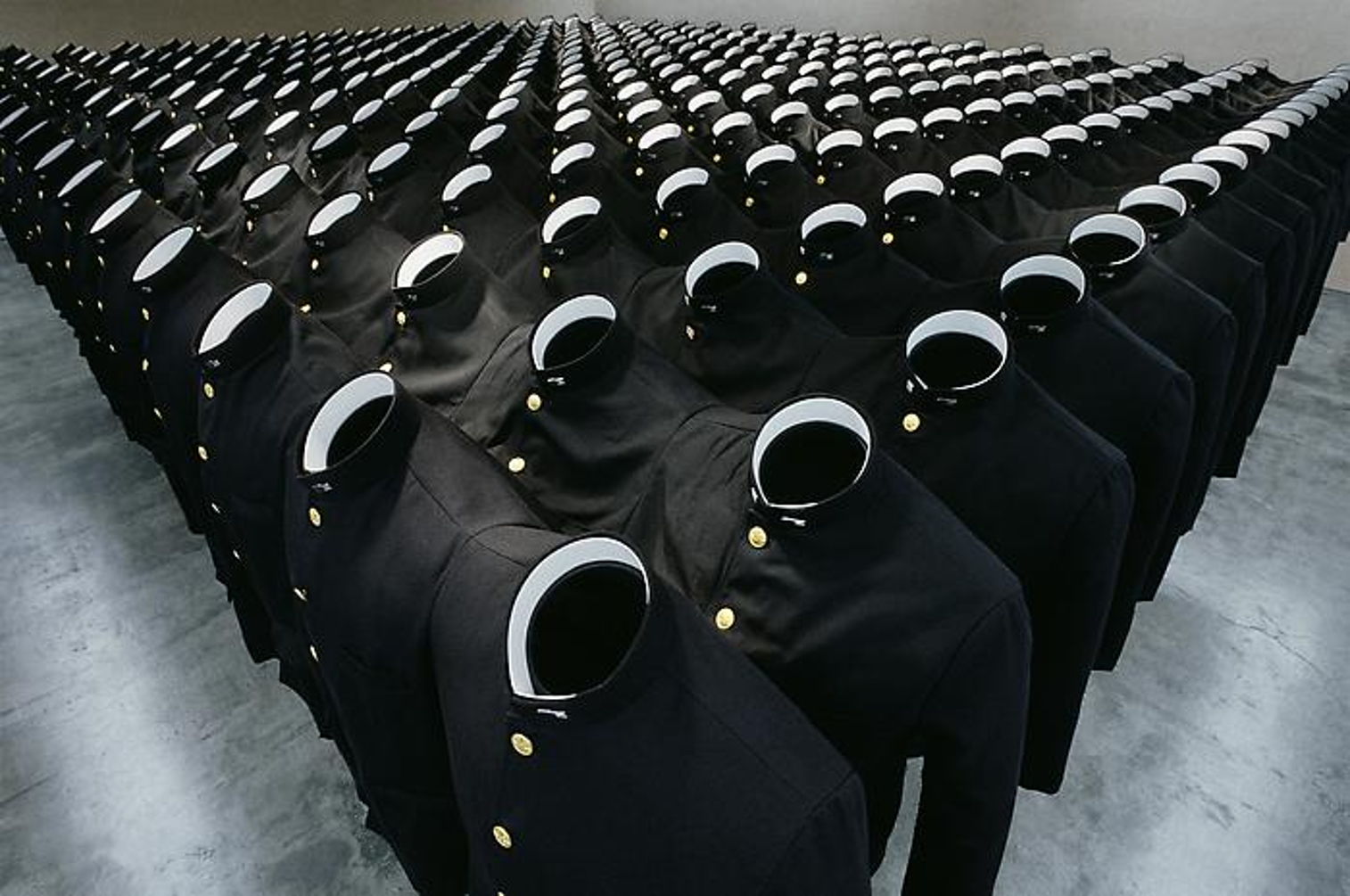 (1997), identical uniforms are arranged in a grid, presenting a structure in