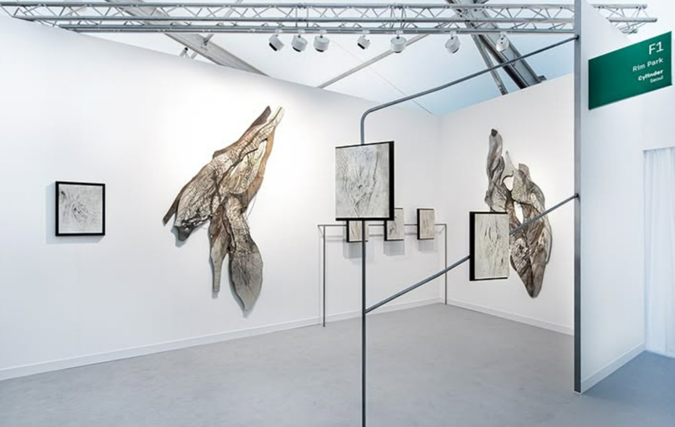 An installation view of Cylinder Gallery, one of the emerging galleries currently active on the international scene, at Frieze London / Screenshot from Cylinder Gallery’s Instagram.