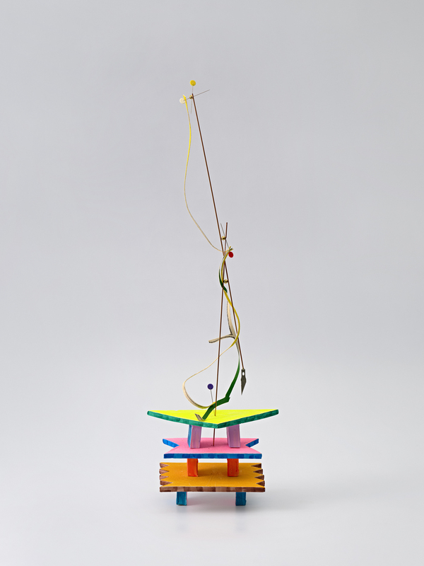 Sun You, No Title, 2025, Wire, beads, silk pins, magnets, acrylic on canvas, artificial flowers, acrylic on ceramic base, Dimensions variable (approx. 22 x 30 x 46 cm) ©G Gallery