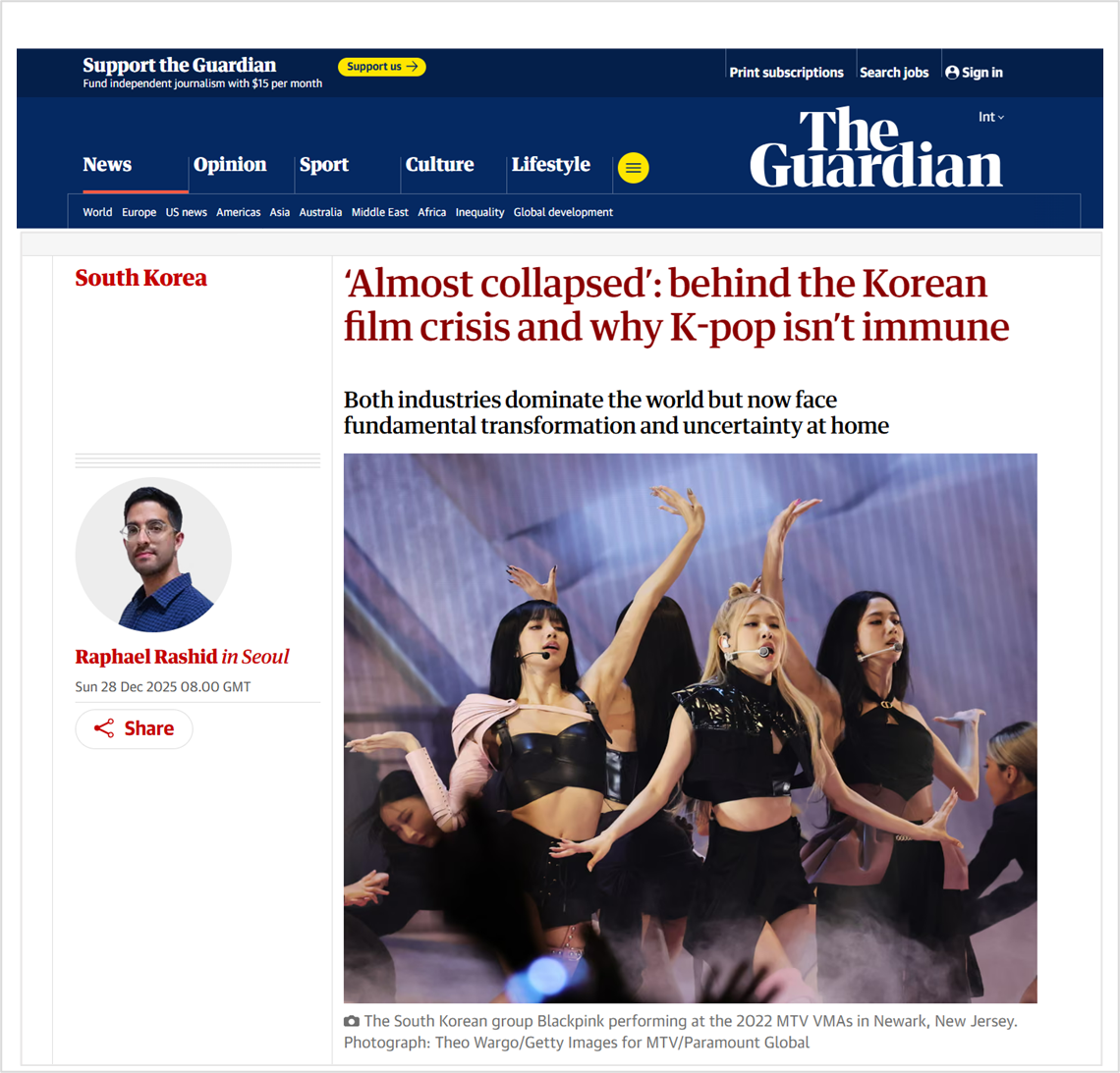 Screenshot from “The Guardian” article on the Korean film crisis