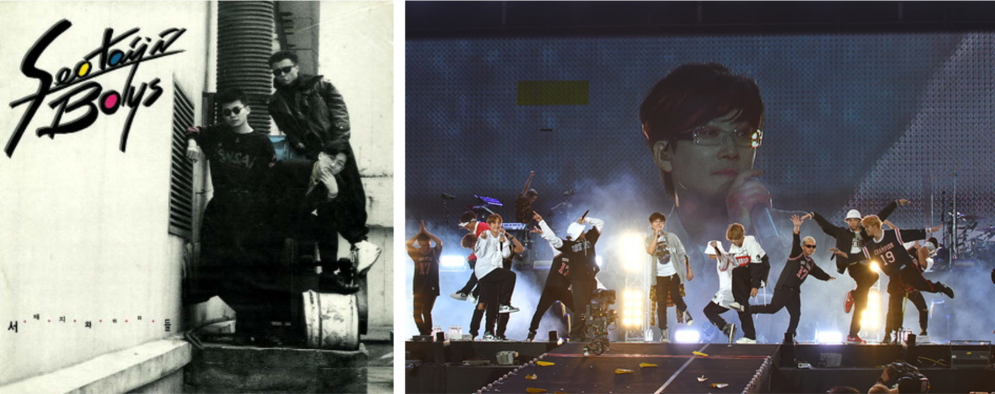 (Left) Seo Taiji and Boys, 1st Album “I Know” (1992), (Right) Seo Taiji performing with BTS on stage / Photo: Seo Taiji Company