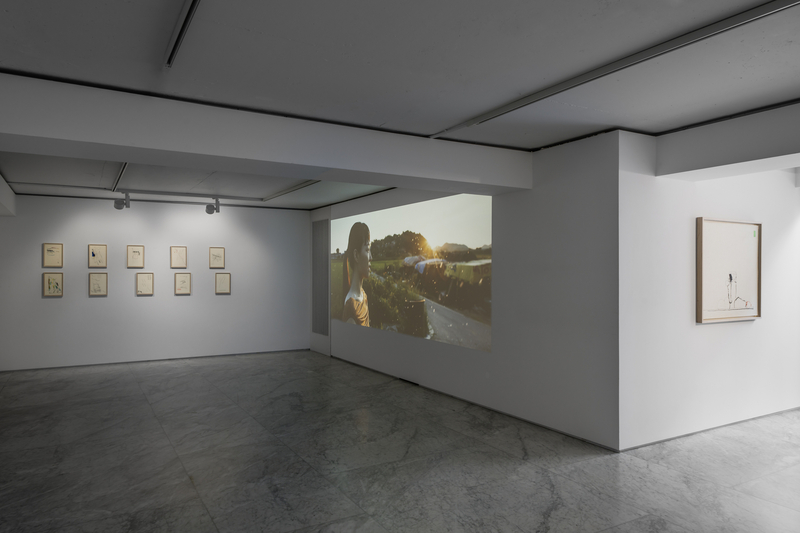 (traditional Korean mulberry paper) paintings, drawings, and video set against