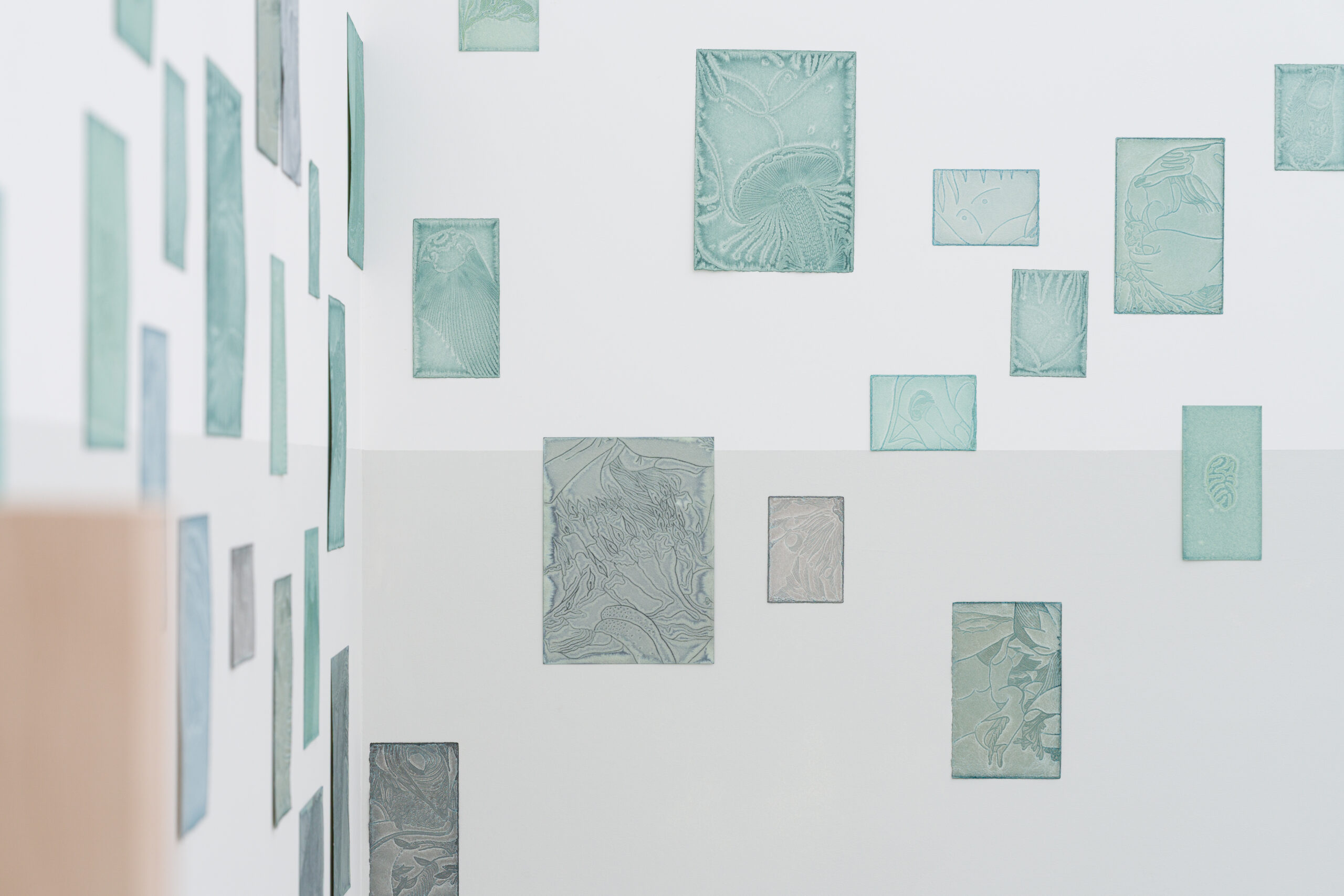 water, then submerging sheets of paper incised with images using a sharp awl.