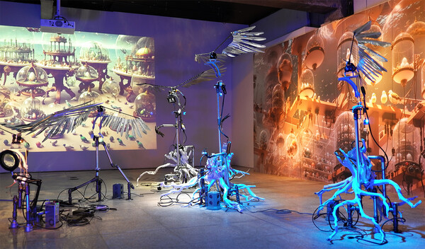 Oh Hwajin, Nadarata 2023, 2023, Scrapped car parts, iron, lighting, etc, Dimensions variable, Courtesy of the artist © Gyeongnam Art Museum