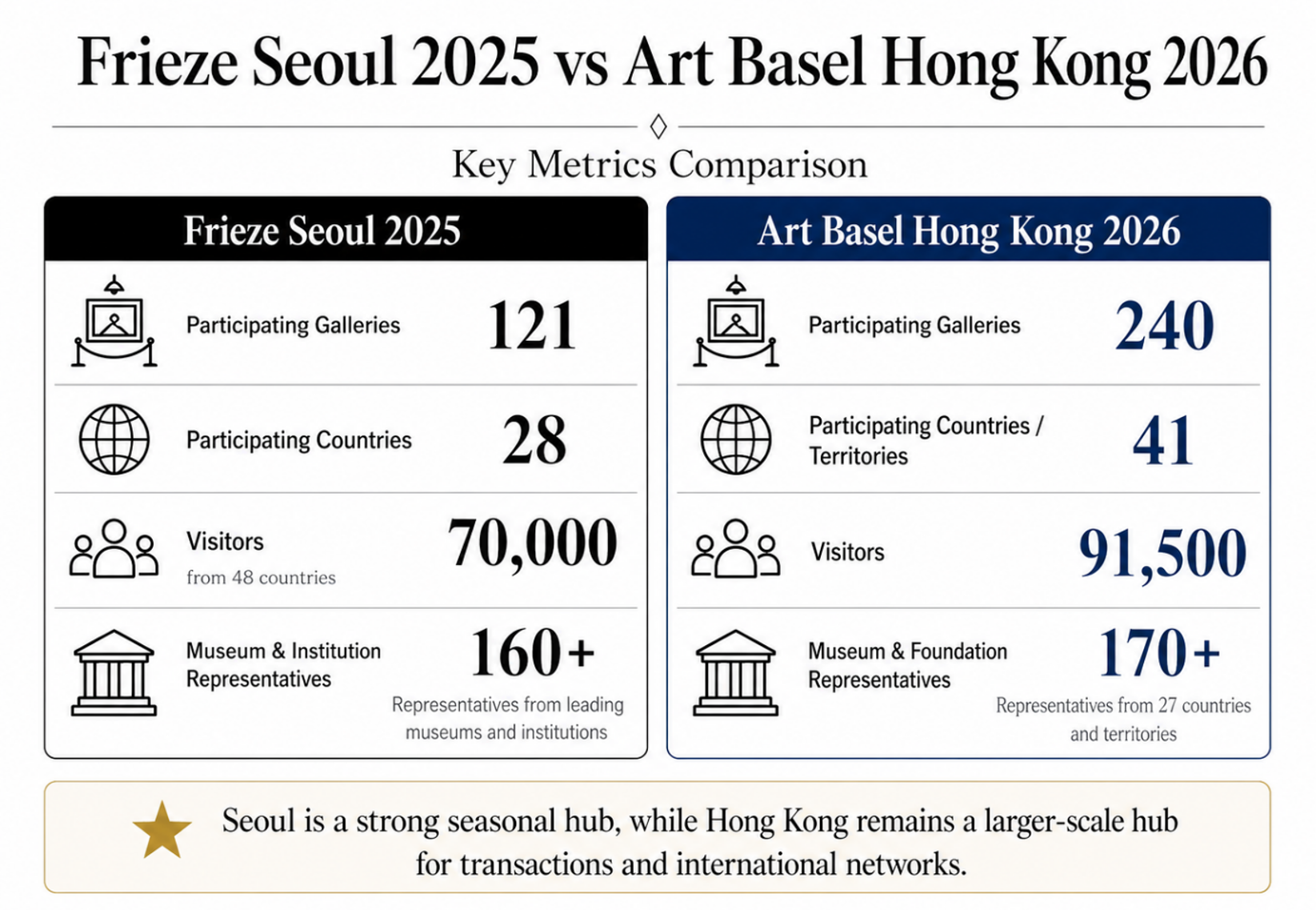 Sources: Frieze official press release (Sep, 2025), Art Basel official release (Mar, 2026)