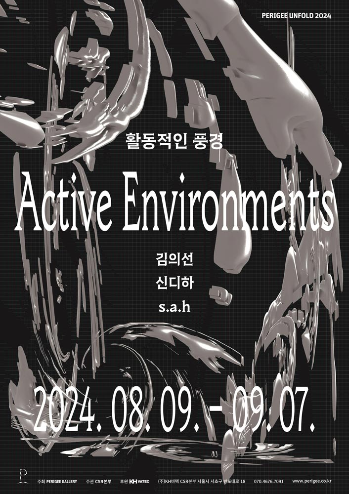 Perigee Gallery presents “Active Environments” by Euysun Kim, SIN DI HA, and s.a.h (Yoojin Shim, Jihyung Han) through September 7 as the 2024 exhibition of ‘Perigee Unfold,’ a curatorial program that focuses on young artists under the age of 35.