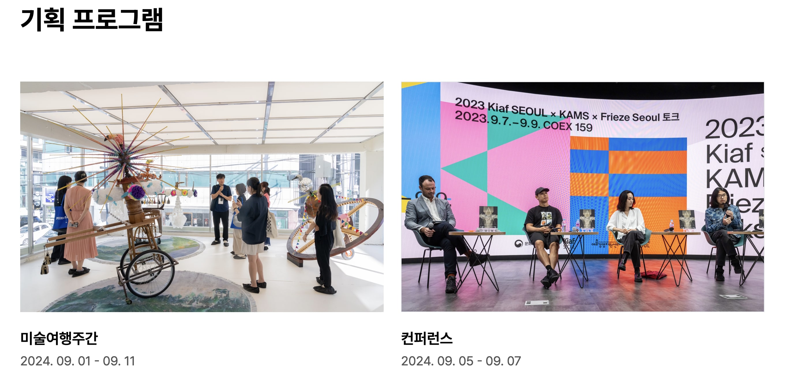 30.~8. 25.), 서울아트위크(9. 2.~9. 8.), 키아프 서울(9. 4.~9. 8.), 프리즈 서울(9. 4.~9. 7.)까지 대규모