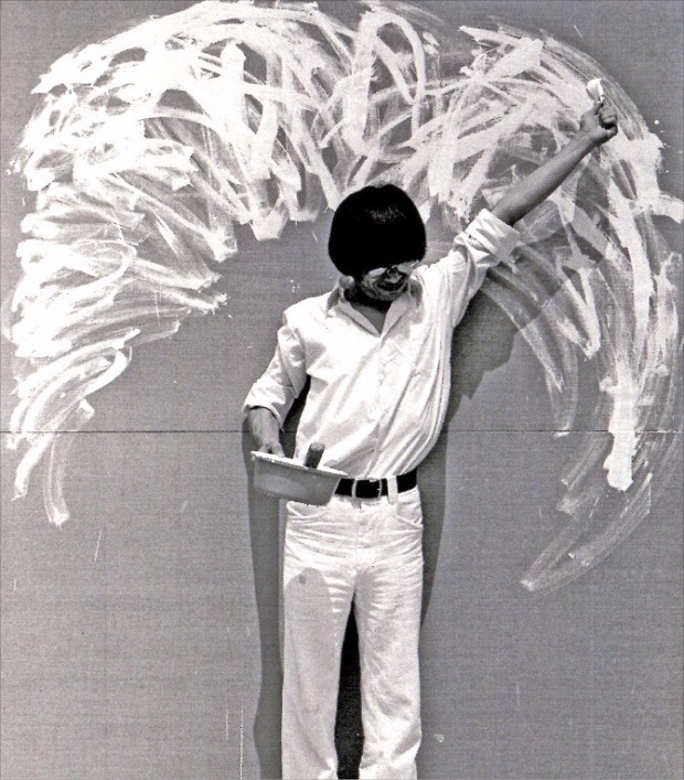 Lee Kun-yong performing ‘The Method of Drawing,’ 1976. Photograph: Lee Kun-yong/The Asia Culture Centre.